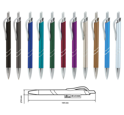 Размер на артикула: Ø10х145 mm. Печатаемо поле: 30х6 mm. Печат: тампонен, ситопечат, гравиране.