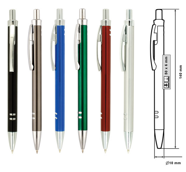 Размер на артикула: Ø10х140 mm. Печатаемо поле: 50х6 mm. Печат: тампонен, ситопечат, гравиране.