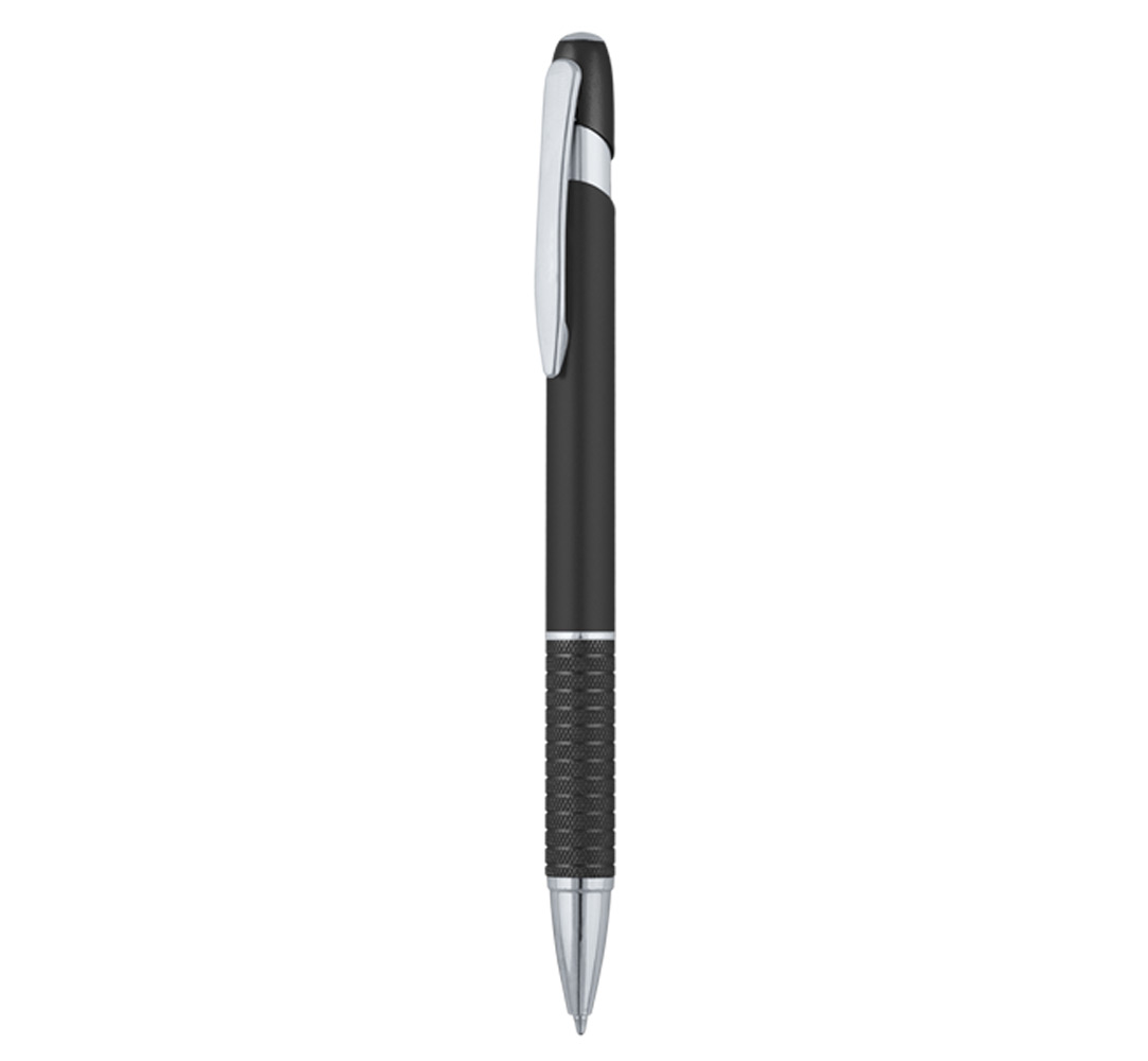 Metal ballpoint pen, slim plastic refill, blue ink.