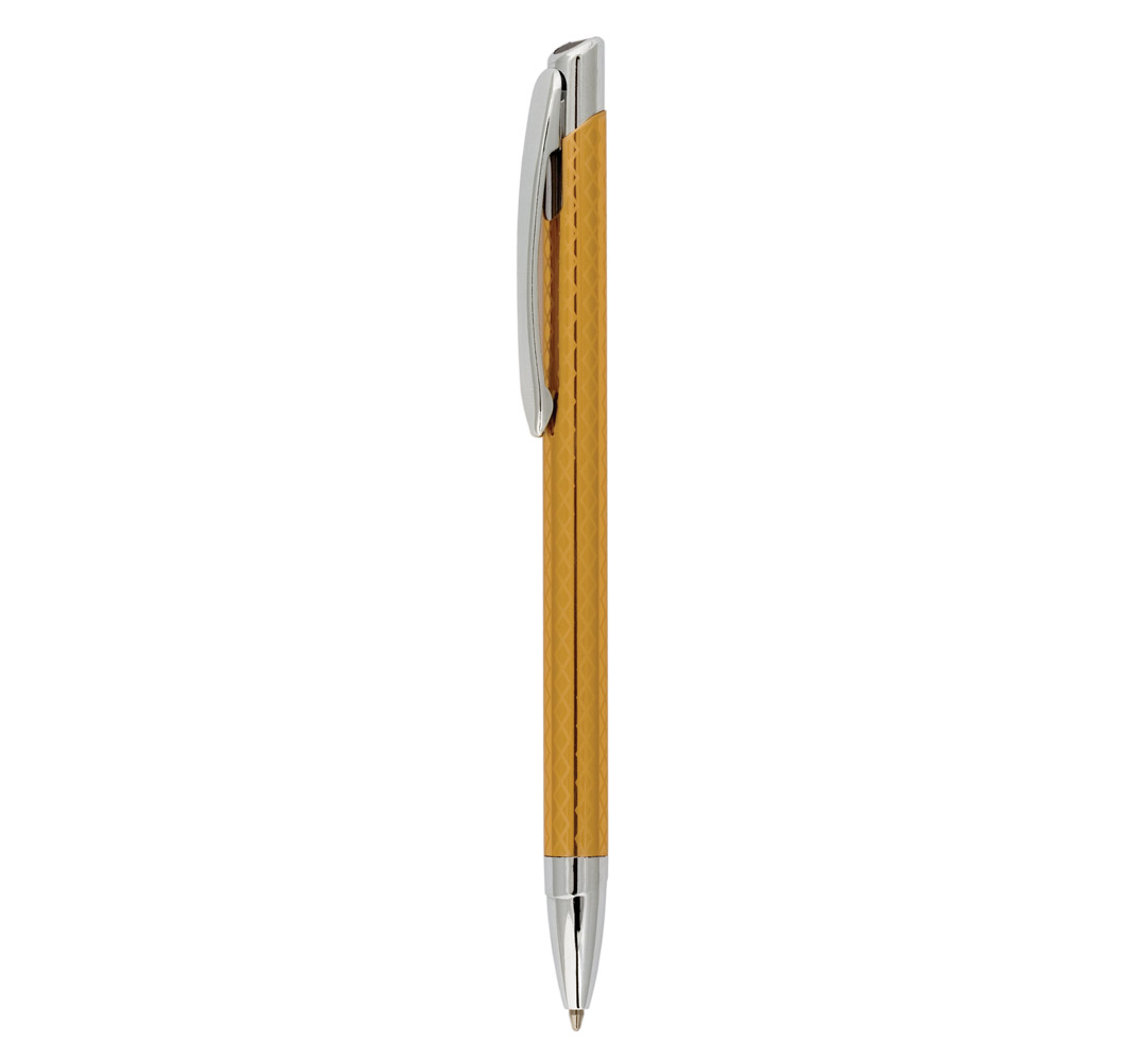 Metal ballpoint pen, slim plastic refill, blue ink.