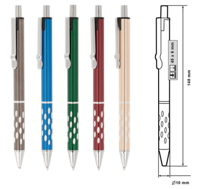 Размер на артикула: Ø10х140 mm. Печатаемо поле: 45х6 mm. Печат: тампонен, ситопечат, гравиране.