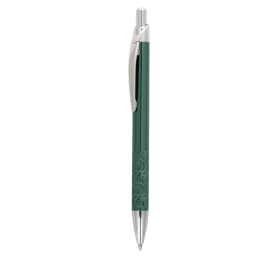 Metal ballpoint pen, slim plastic refil, blue ink.