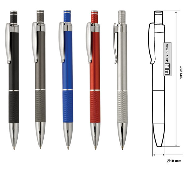 Размер на артикула: Ø10х139 mm. Печатаемо поле: 45х6 mm. Печат: тампонен, ситопечат, гравиране.