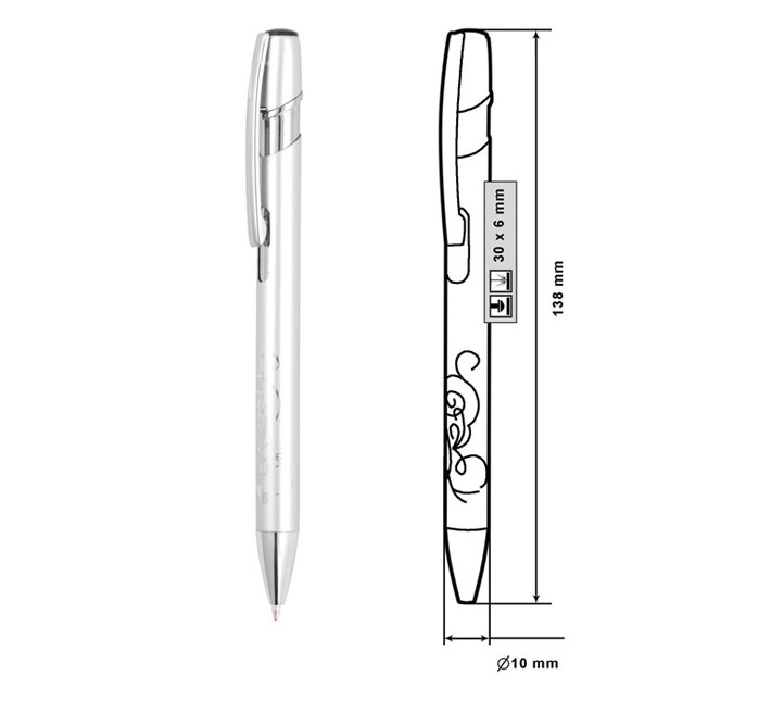 Metal ballpoint pen, plastic Jumbo refill, blue ink.