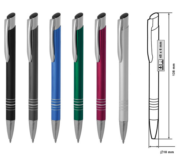 Размер на артикула: Ø10х138 mm. Печатаемо поле: 45х6 mm. Печат: тампонен, ситопечат, гравиране.