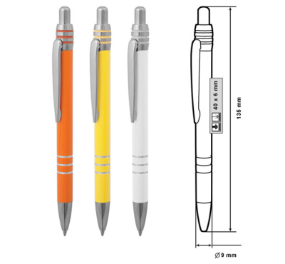 Metal ballpoint pen, plastic Jumbo refill, blue ink.