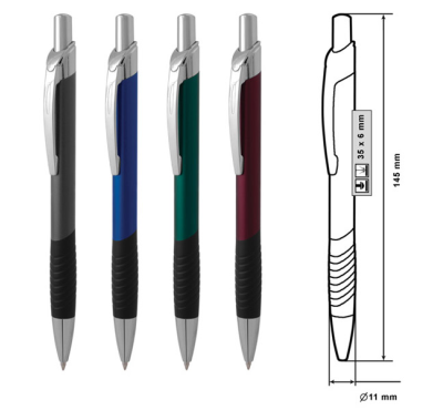 Metal ballpoint pen, plastic Jumbo refill, blue ink.