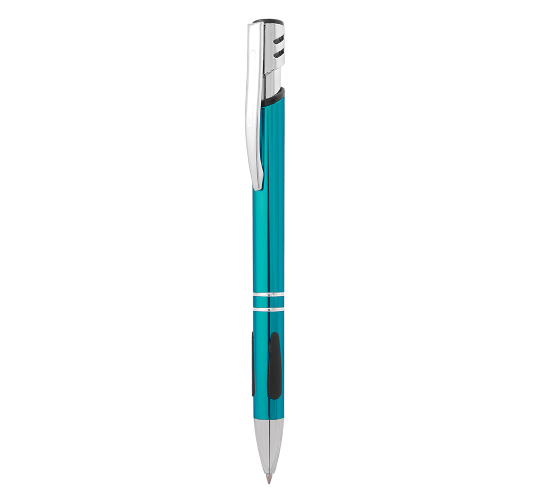 Metal ballpoint pen, plastic Jumbo refill, blue ink.