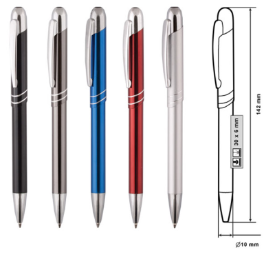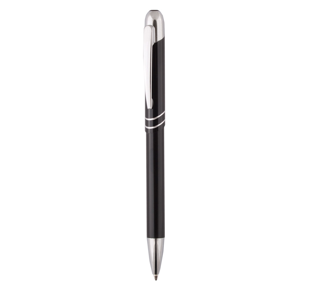 Metal ballpoint pen, plastic Jumbo refill, blue ink.