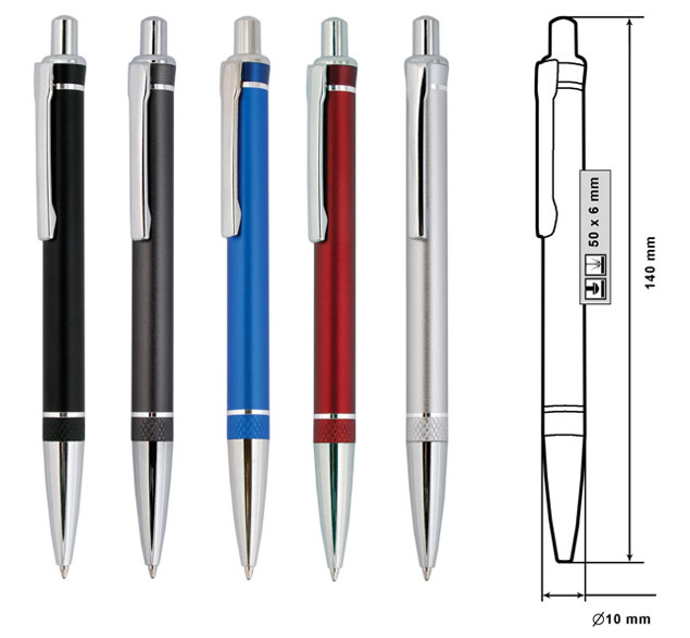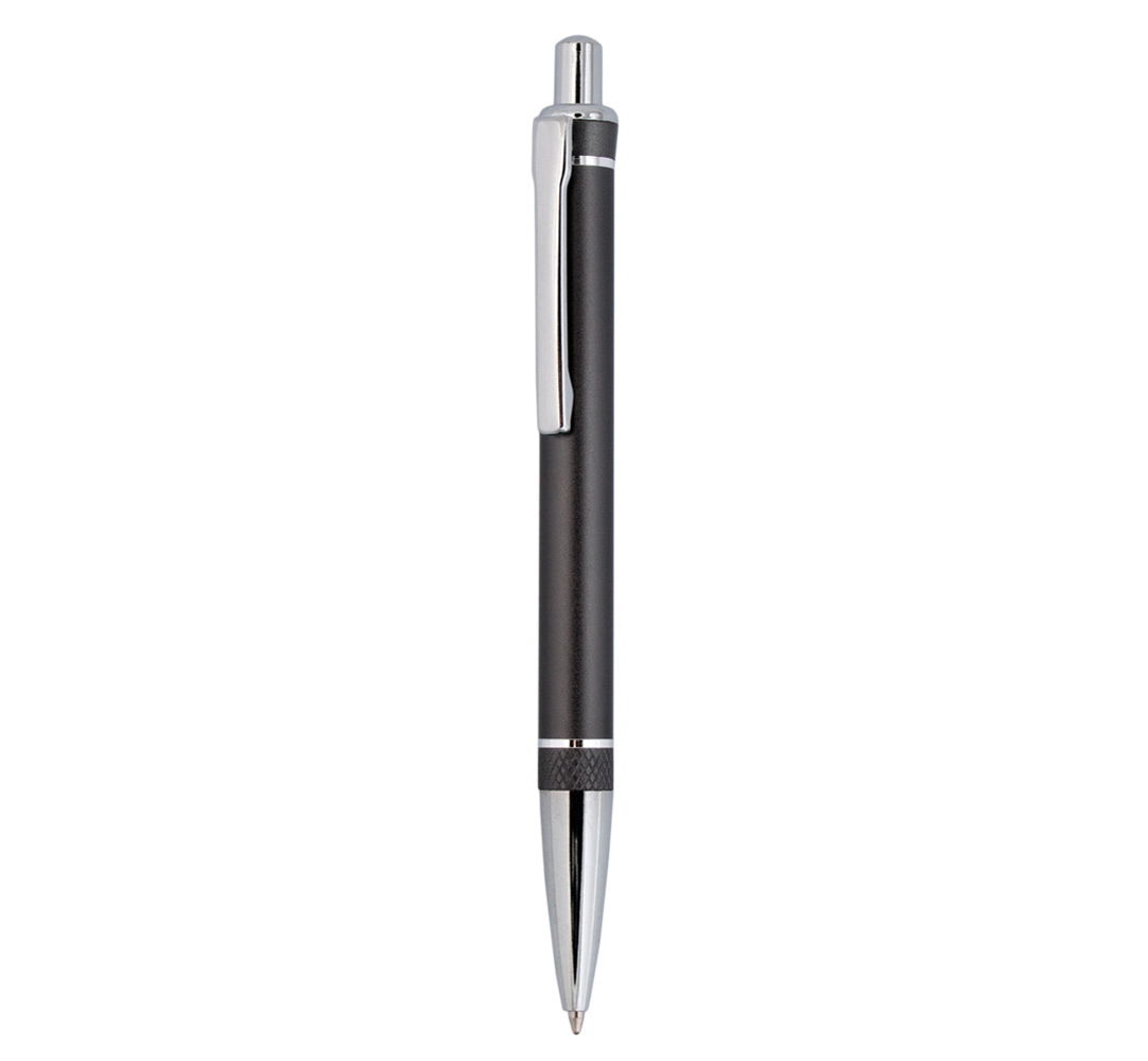 Metal ballpoint pen, plastic Jumbo refill, blue ink.