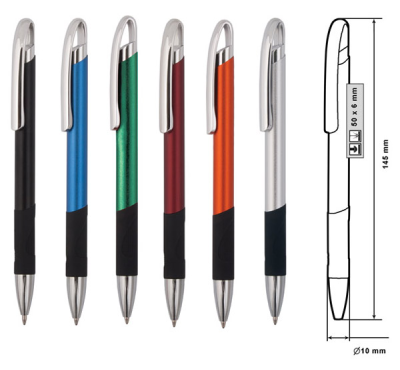 Metal ballpoint pen, slim plastic refill, blue ink.