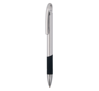 Metal ballpoint pen, slim plastic refill, blue ink.