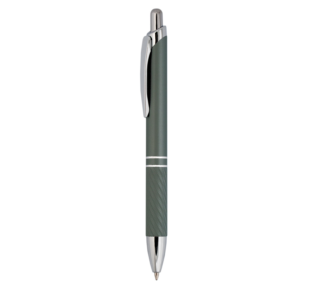 Metal ballpoint pen, plastic Jumbo refill, blue ink.