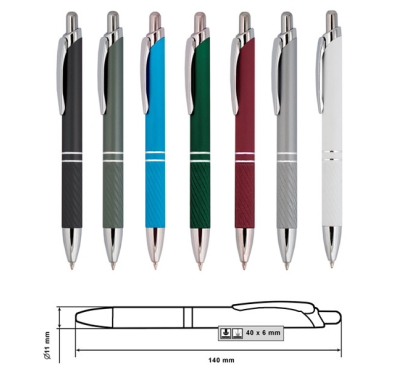 Размер на артикула: Ø11х140 mm. Печатаемо поле: 40х6 mm. Печат: тампонен, ситопечат, гравиране.