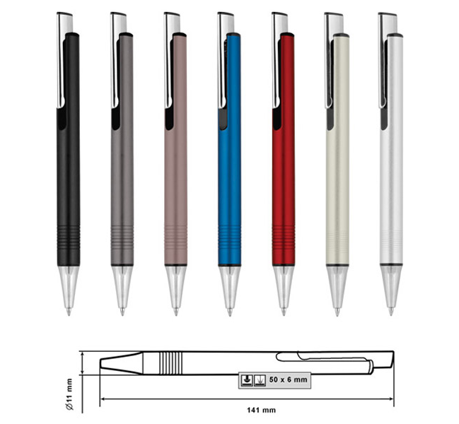 Размер на артикула: Ø11х141 mm. Печатаемо поле: 50х6 mm. Печат: тампонен, ситопечат, гравиране.