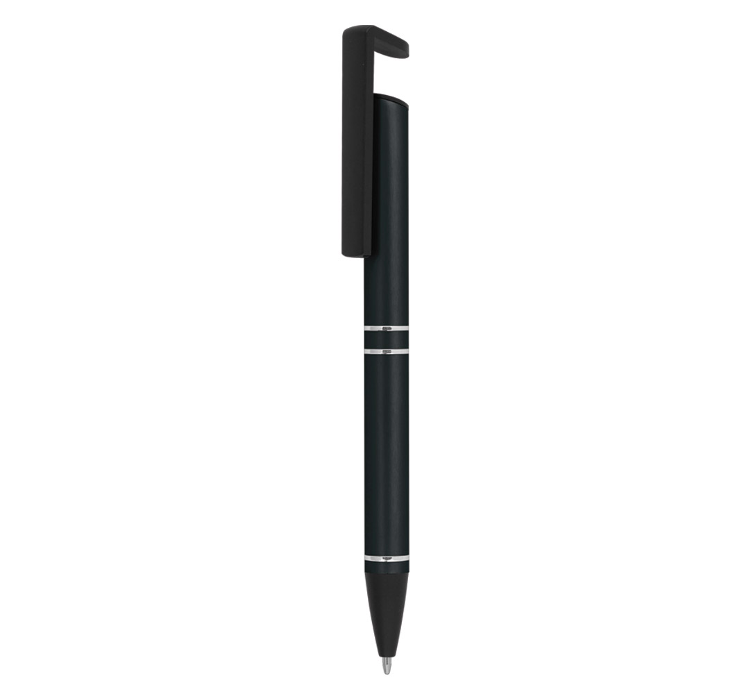 Metal ballpoint pen, slim plastic refill, blue ink.