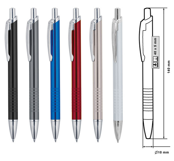 Metal ballpoint pen, plastic Jumbo refill, blue ink.