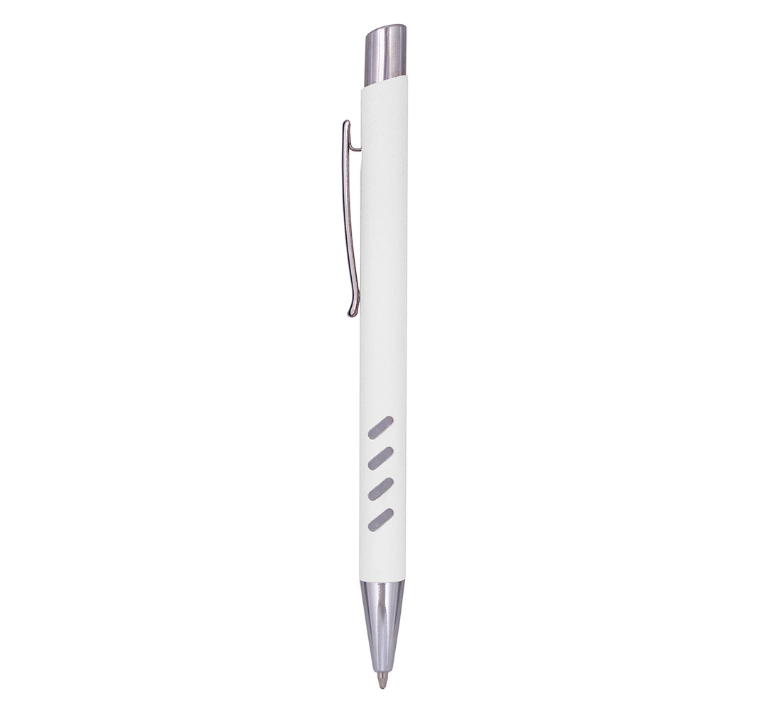Metal ballpoint pen, plastic Jumbo refill, blue ink.