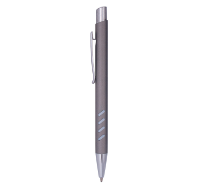 Metal ballpoint pen, plastic Jumbo refill, blue ink.