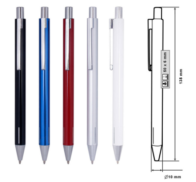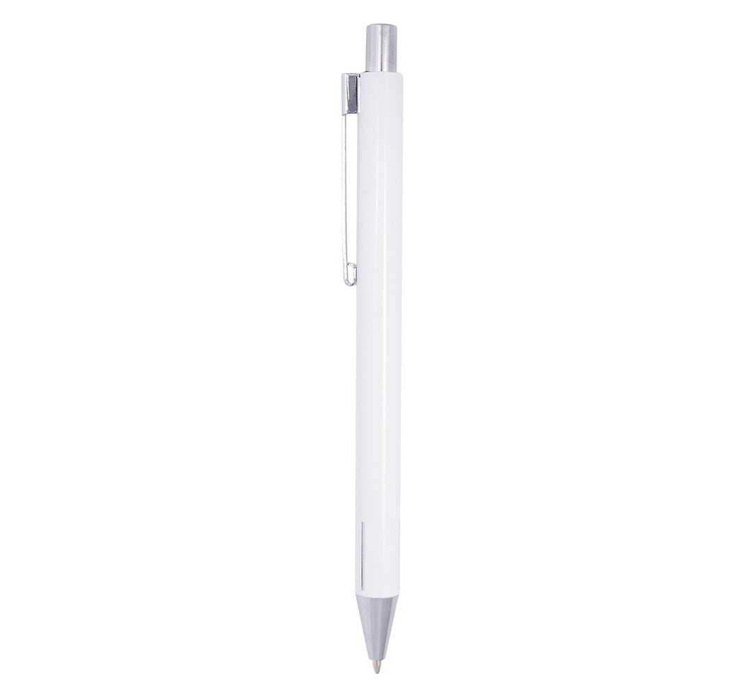 Metal ballpoint pen, slim plastic refill, blue ink.