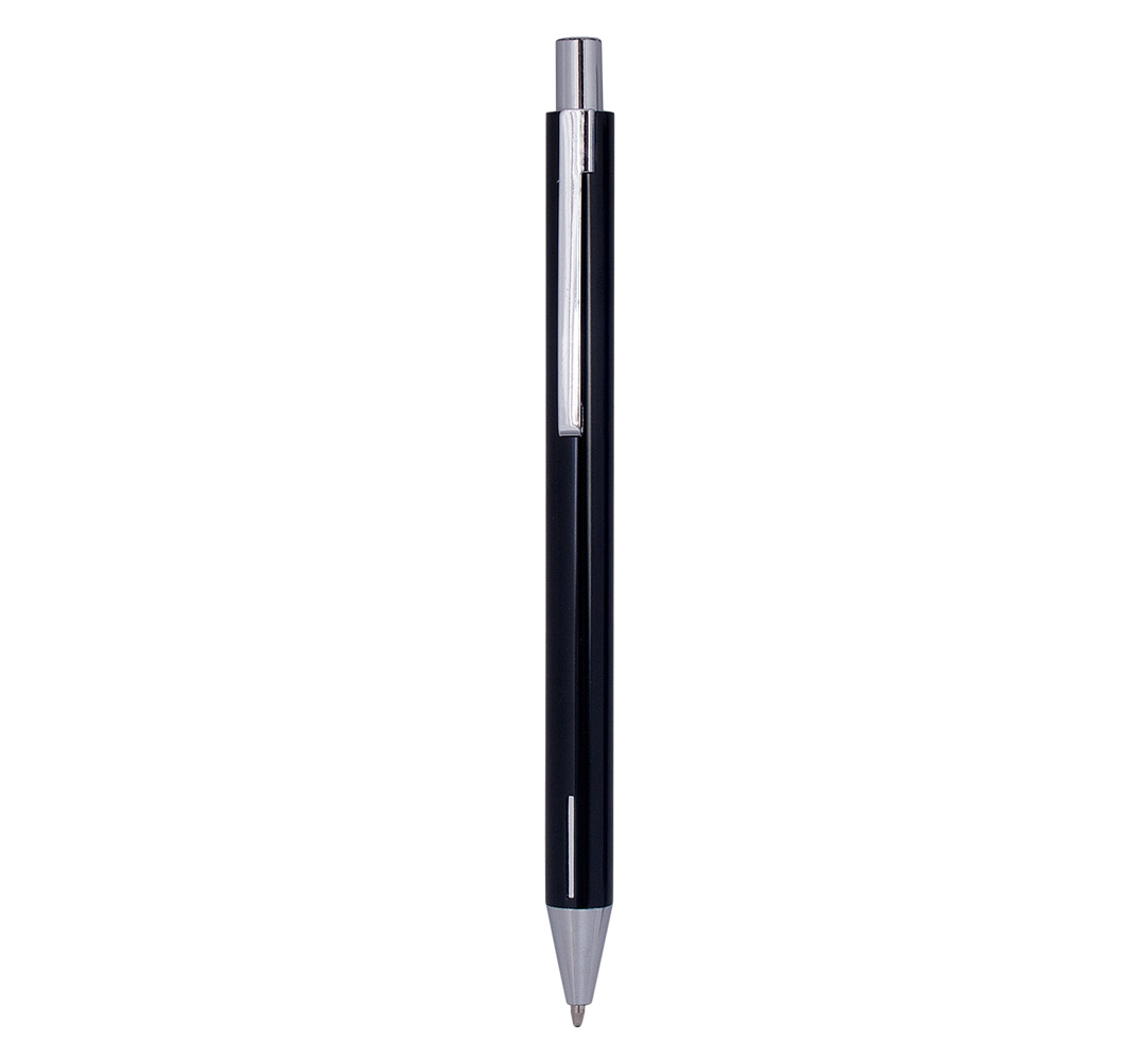 Metal ballpoint pen, slim plastic refill, blue ink.