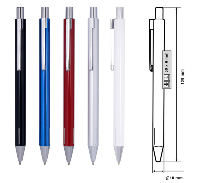 Размер на артикула: Ø10х138 mm. Печатаемо поле: 50х6 mm. Печат: тампонен, ситопечат, гравиране.