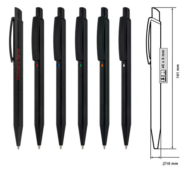 Metal ballpoint pen, plastic Jumbo refill, blue ink.