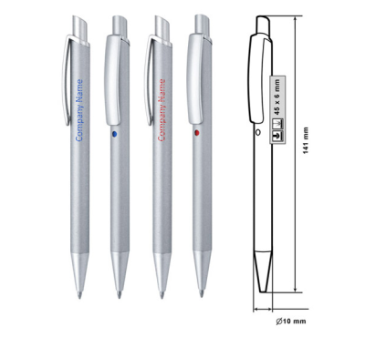 Размер на артикула: Ø10х141 mm. Печатаемо поле: 45х6 mm. Печат: тампонен, ситопечат, гравиране. Цветно покритие при гравиране.