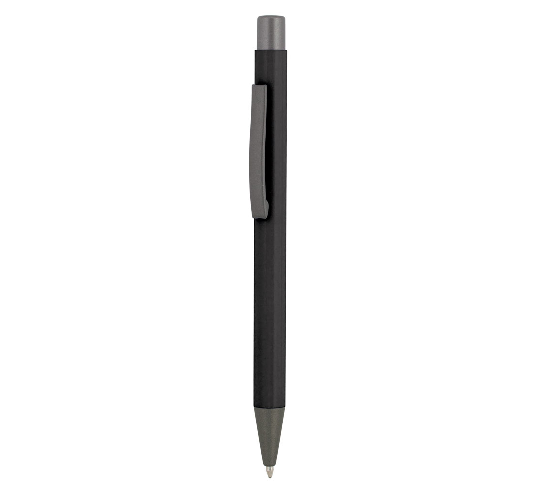 Metal ballpoint pen, plastic Jumbo refill, blue ink.