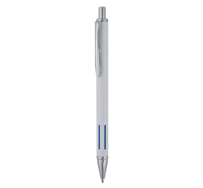 Metal ballpoint pen, slim plastic refill, blue ink.