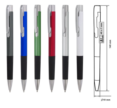 Размер на артикула: Ø10х140 mm. Печатаемо поле: 45х7 mm. Печат: тампонен, ситопечат, гравиране.