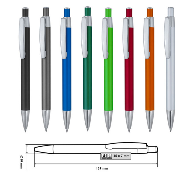 Metal ballpoint pen, plastic Jumbo refill, blue ink.