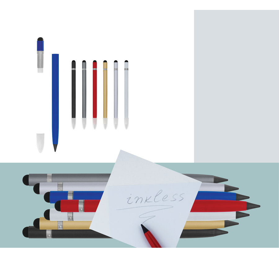 Дълготрайна изтриваема писалка без мастило (накрайник от метална сплав) с гума и стилус.