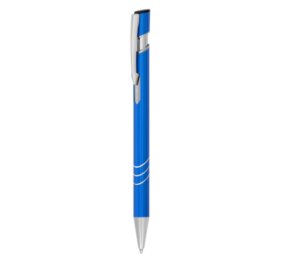 Metal ballpoint pen, plastic Jumbo refill, blue ink.