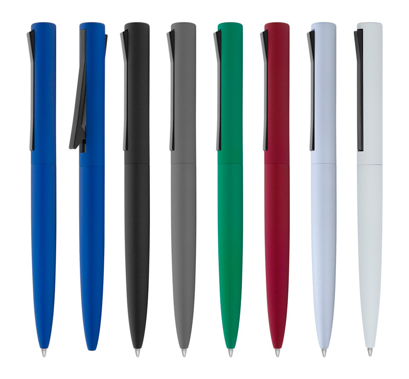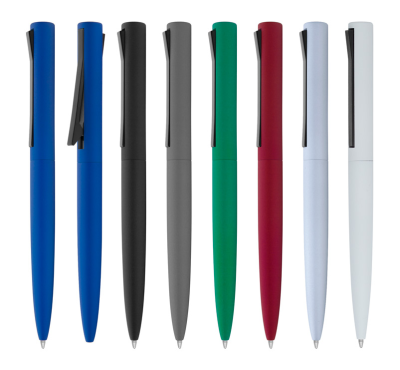 Metal ballpoint pen, plastic Jumbo refill, blue ink.