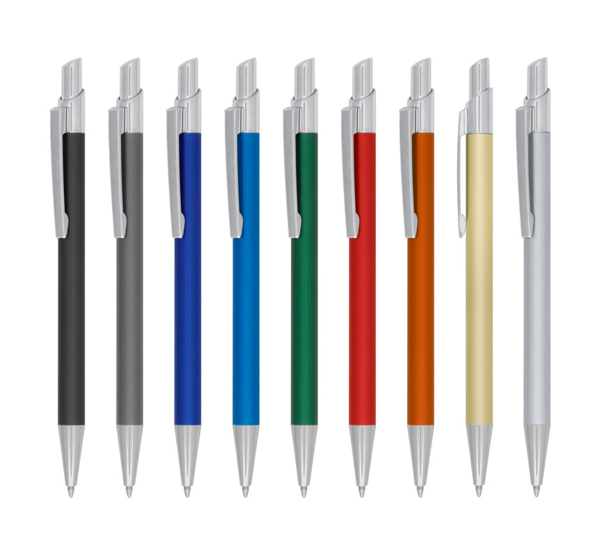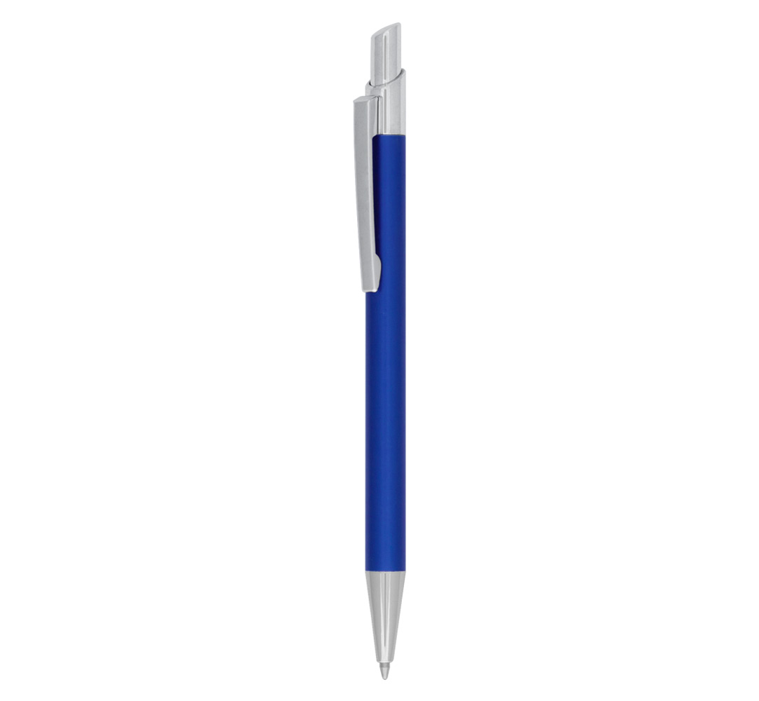 Metal ballpoint pen, plastic Jumbo refill, blue ink.