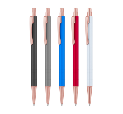 Metal ballpoint pen, regular refill, blue ink.