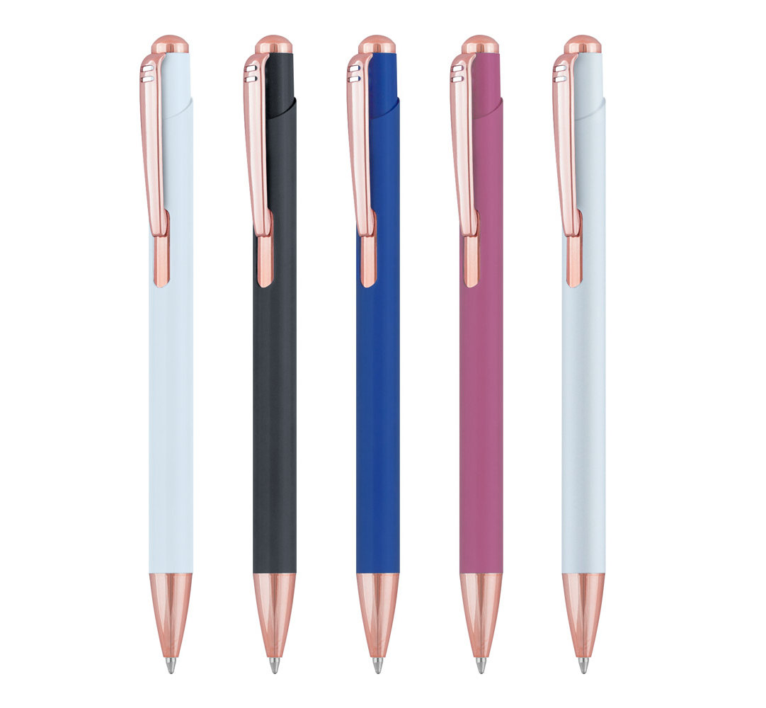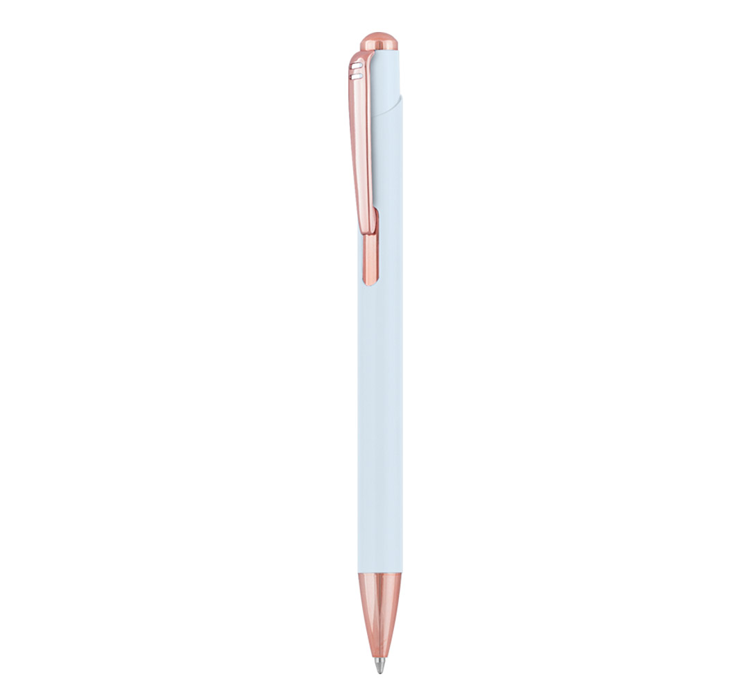 Metal ballpoint pen, plastic Jumbo refill, blue ink.