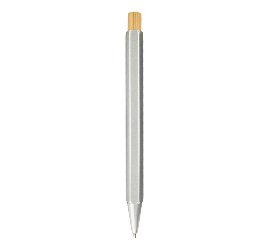 Metal ballpoint pen, plastic Jumbo refill, blue ink.