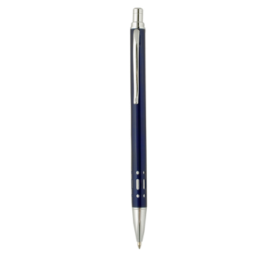 Metal ballpoint pen, plastic Jumbo refill, blue ink.