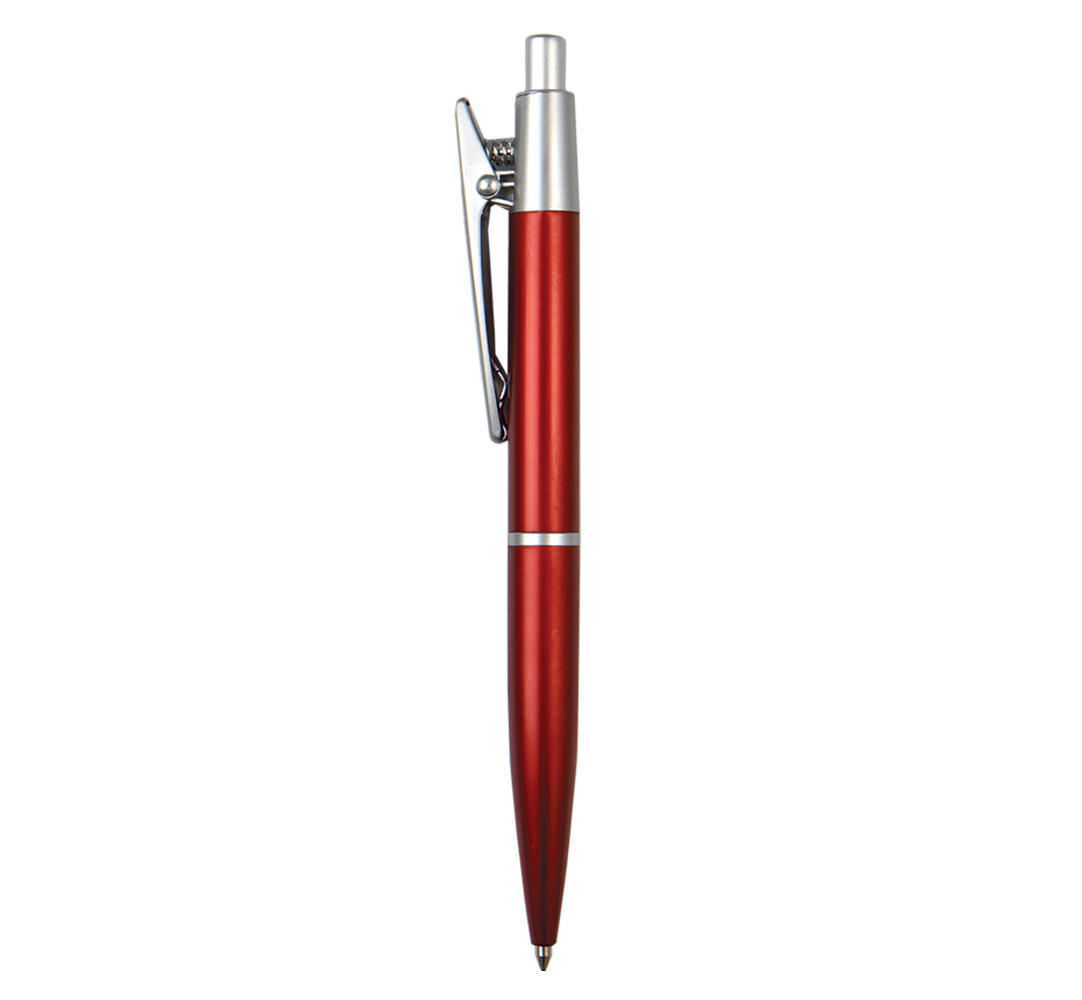 Metal ballpoint pen, plastic Jumbo refill, blue ink.