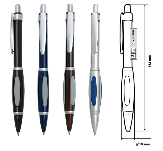 Metal ballpoint pen, plastic Jumbo refill, blue ink.