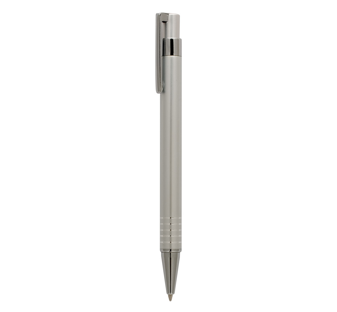 Metal ballpoint pen, plastic Jumbo refill, blue ink.