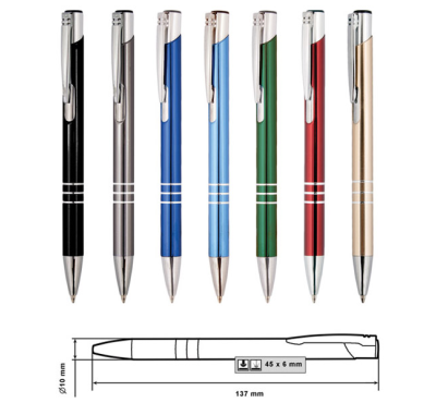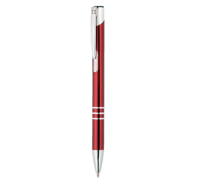 Metal ballpoint pen, slim plastic refill, blue ink.