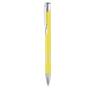 Metal ballpoint pen, slim plastic refill, blue ink.