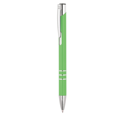 Metal ballpoint pen, slim plastic refill, blue ink.
