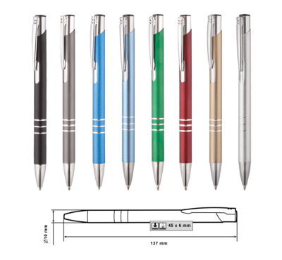 Размер на артикула: Ø10х137 mm. Печатаемо поле: 45х6 mm. Печат: тампонен, ситопечат, гравиране.