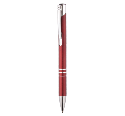 Metal ballpoint pen, slim plastic refill, blue ink.