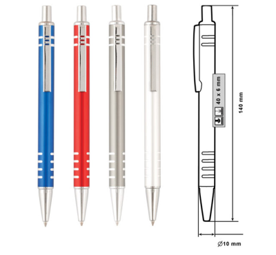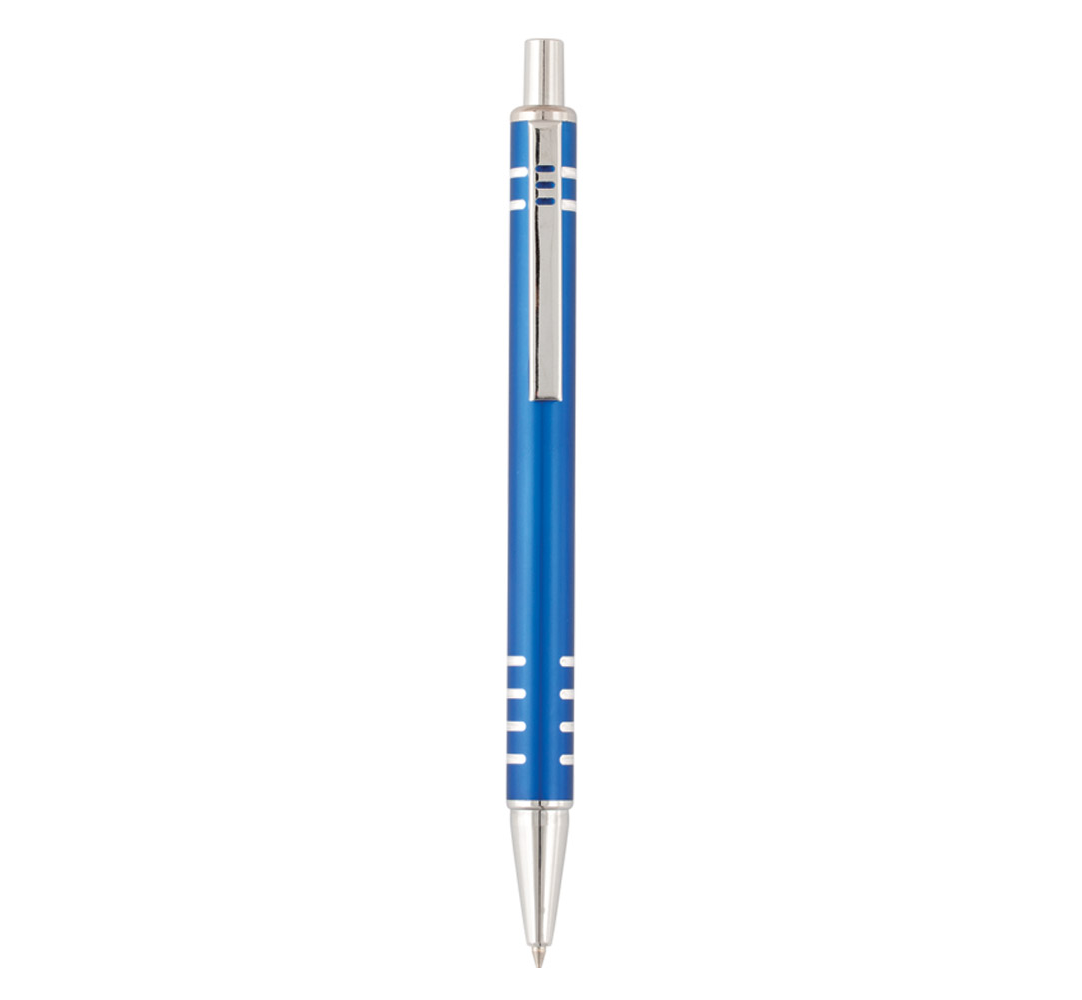 Metal ballpoint pen, plastic Jumbo refill, blue ink.