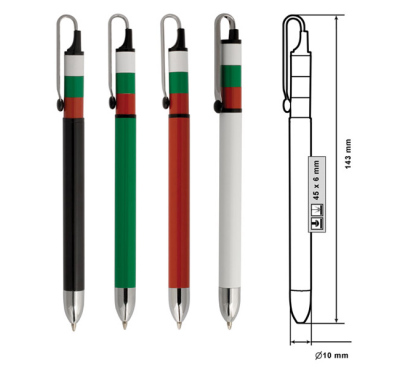 Размер на артикула: Ø10х143 mm. Печатаемо поле: 45х6 mm. Печат: тампонен, ситопечат, гравиране.